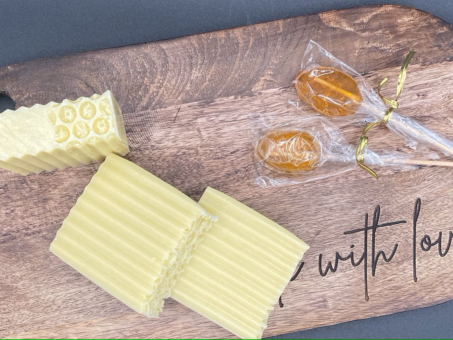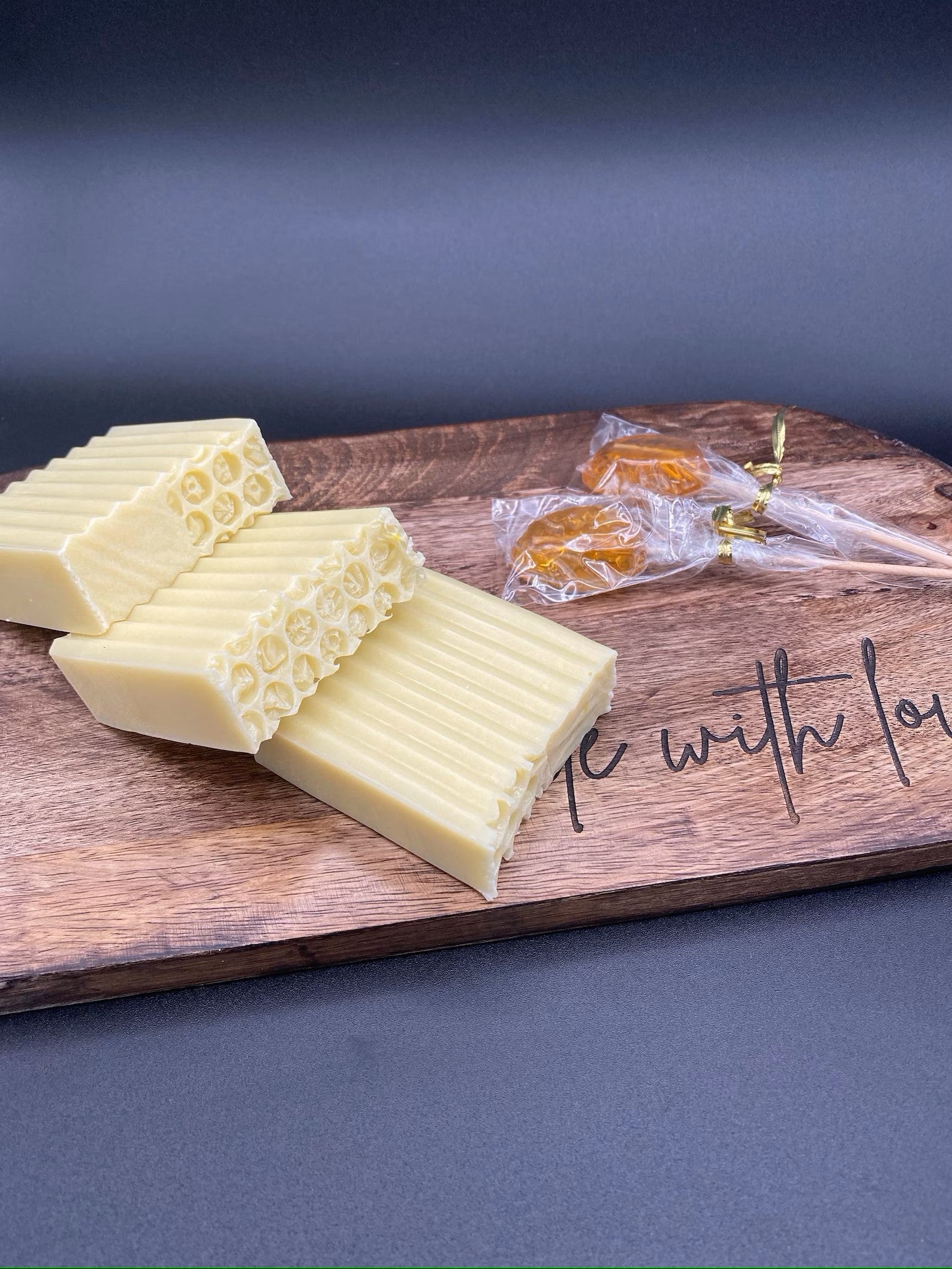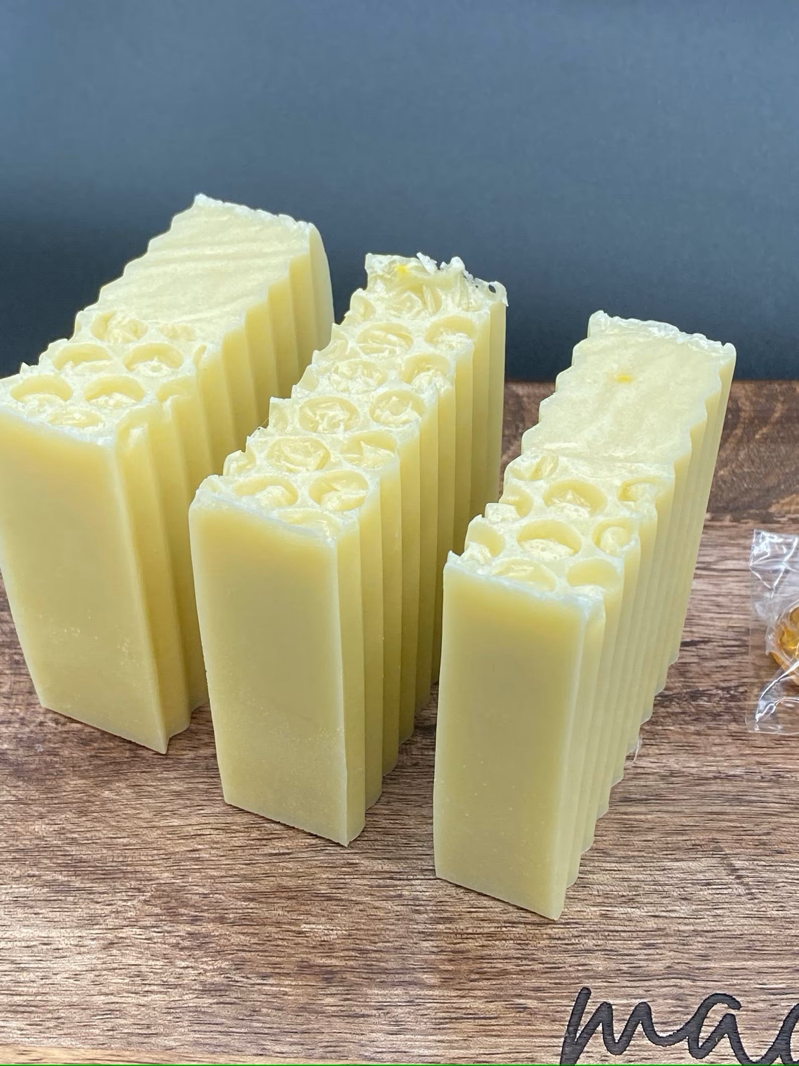 Our Lemon Honey soap is handmade with only the best ingredients. Enjoy locally sourced raw honey and organic cocoa butter, combined with real lemon juice for a clean and fresh feel. Enjoy an all-natural, luxurious bath with our lemon honey soap!